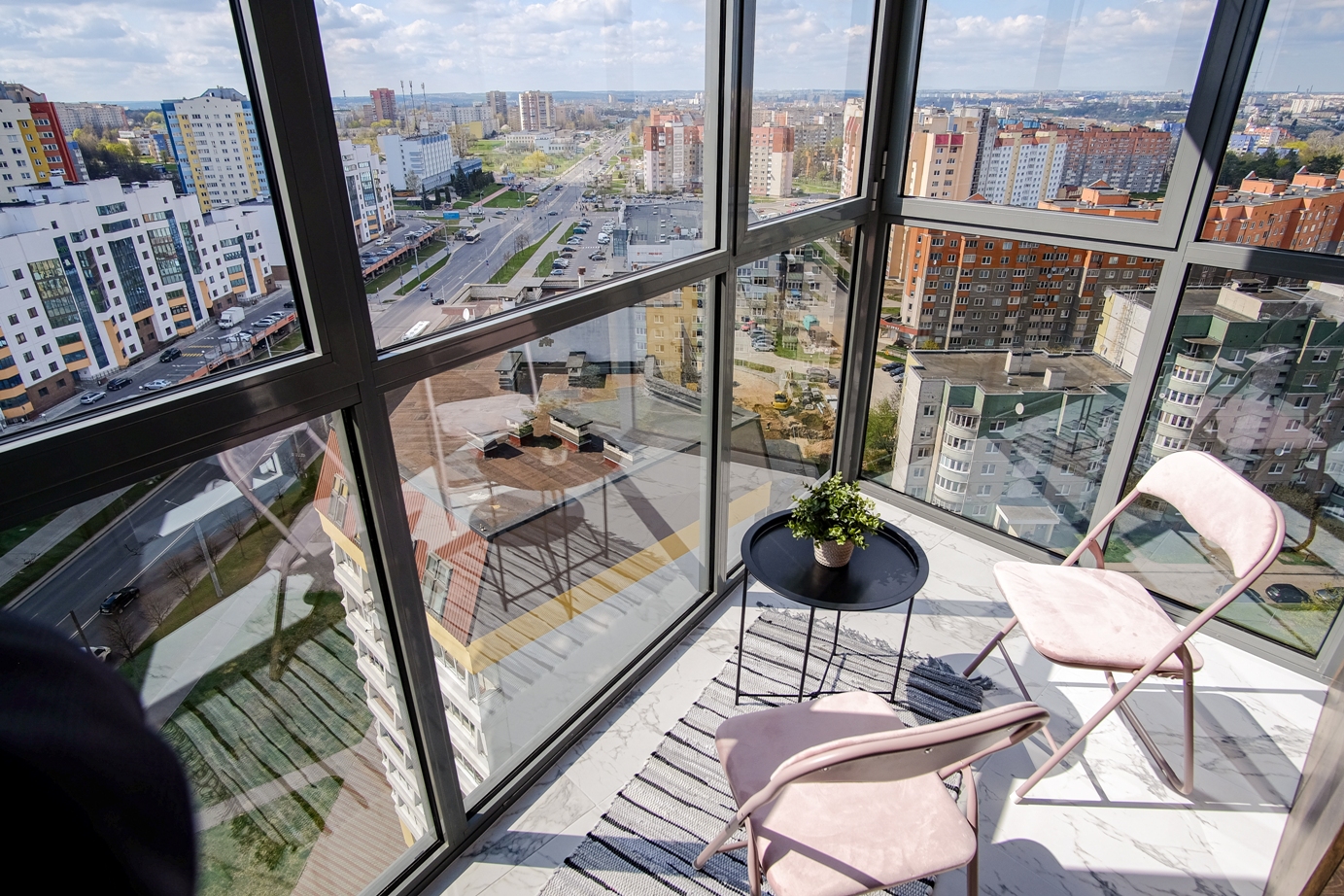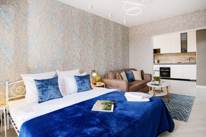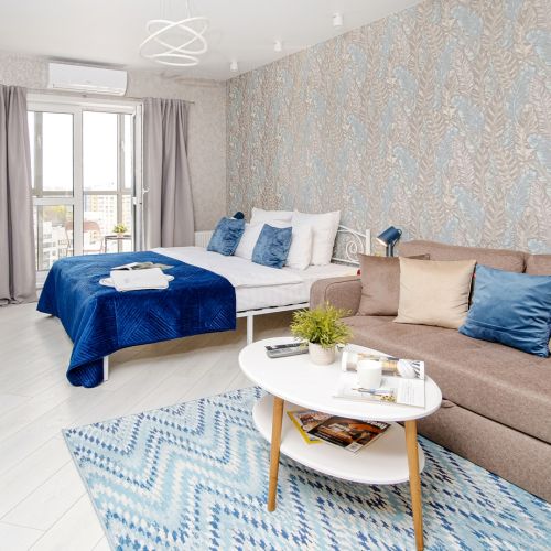 Апартаменты располагаются в новом высотном доме на 17 этаже, откуда открывается потрясающий вид на город. В них есть все необходимое: бытовая техника, кондиционер, интернет Wi-Fi, посуда, постельное белье, полотенца, чай, кофе и другие мелочи. Кухонная зона оснащена всем необходимым для приготовления пищи и имеет всю необходимую посуду.
